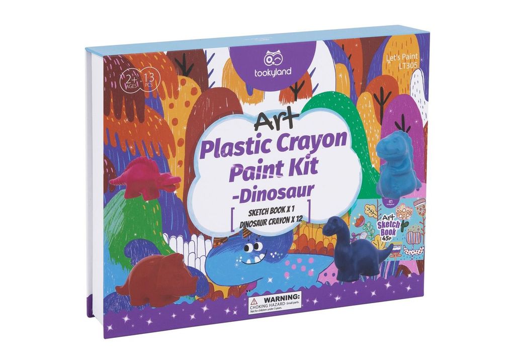 Dinosaur-themed wax crayons in fun shapes plus a sketchbook—non-toxic, safe, and creativity-boosting!
